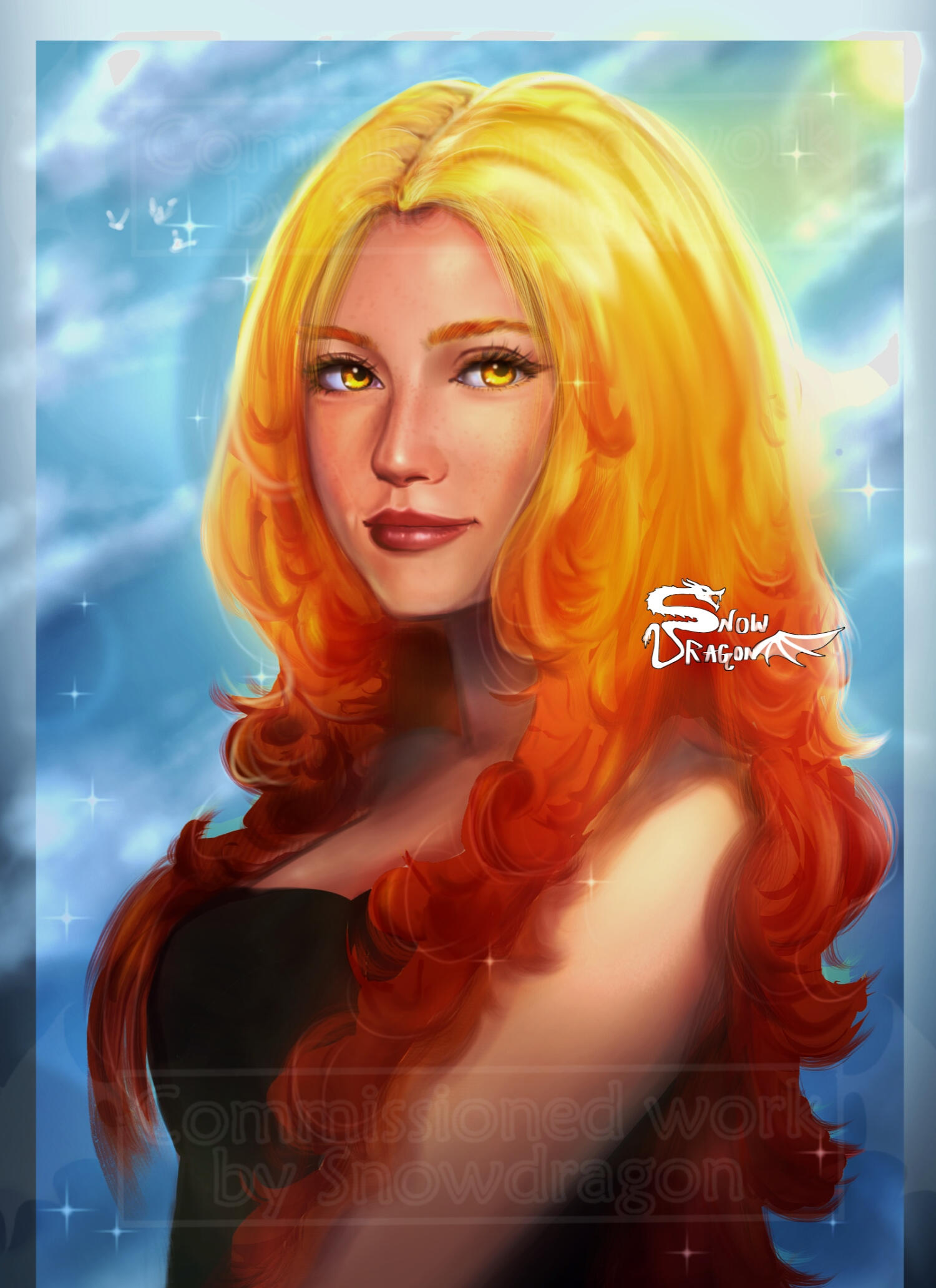 -A medium quality JPEG image with 2 watermarks, the first one being a bigger low opacity watermark "commissioned art by snowdragon" overlayed the main body of the image and another smaller watermark at higher opacity somewhere over the main subject of the image. This is for you to share on social media (with credit), share with your friends and general non commercial, only personal use.